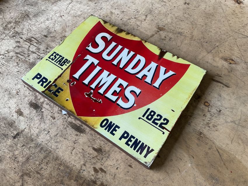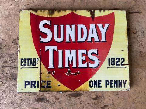 Enamel Sunday Times Advertising Sign - 40x30cms