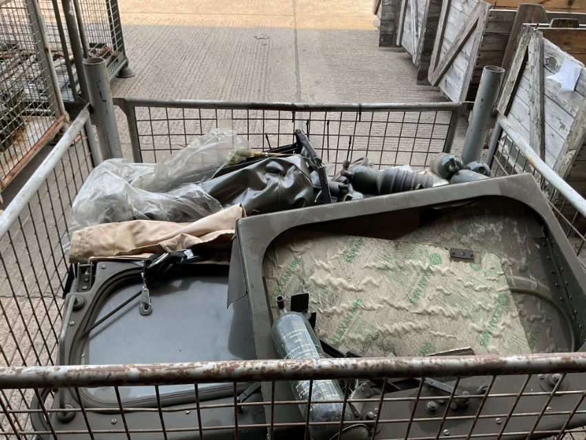 1x Stillage of FV432 Spares inc Windscreens etc
