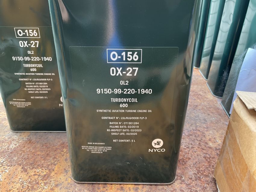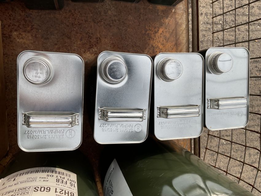 13x New Unissued 5L Cans of OX-26/27 Lubricating Oil, from MOD Reserve Stock