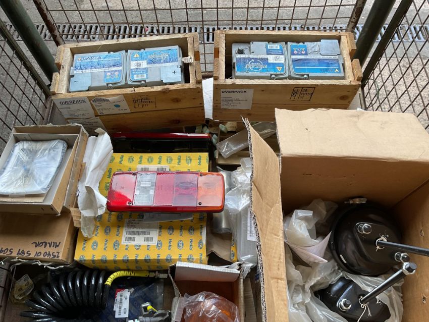 You are bidding for 1X stillage new unissued of vehicle spares including brake units, batteries, lights, etc from MOD.
