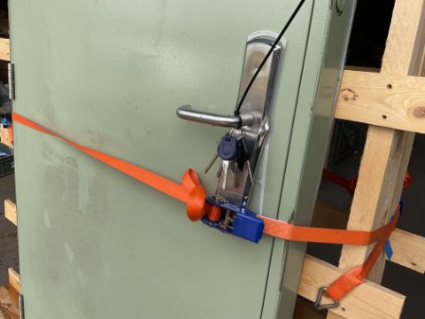 2 x Steel Security Doors. Comes with Keys as shown. 1 metre wide, 2 metres high. stainless steel hinges.