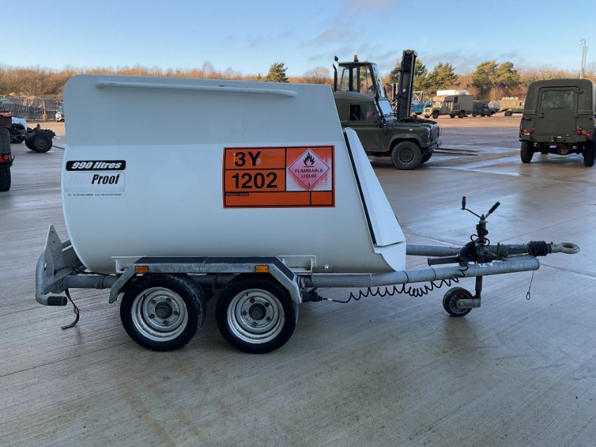 Fuel Proof 990 Litre Bunded Aviation Fuel Bowser, Fast Tow Double Axle Trailer Direct from UK MOD/RAF