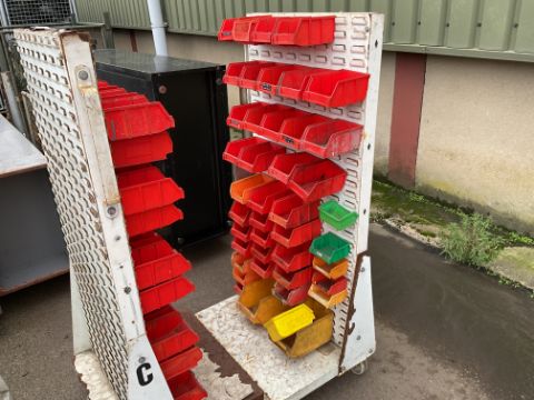 6x Portable Parts Racks c/w Plastic Lin Bins, from MOD