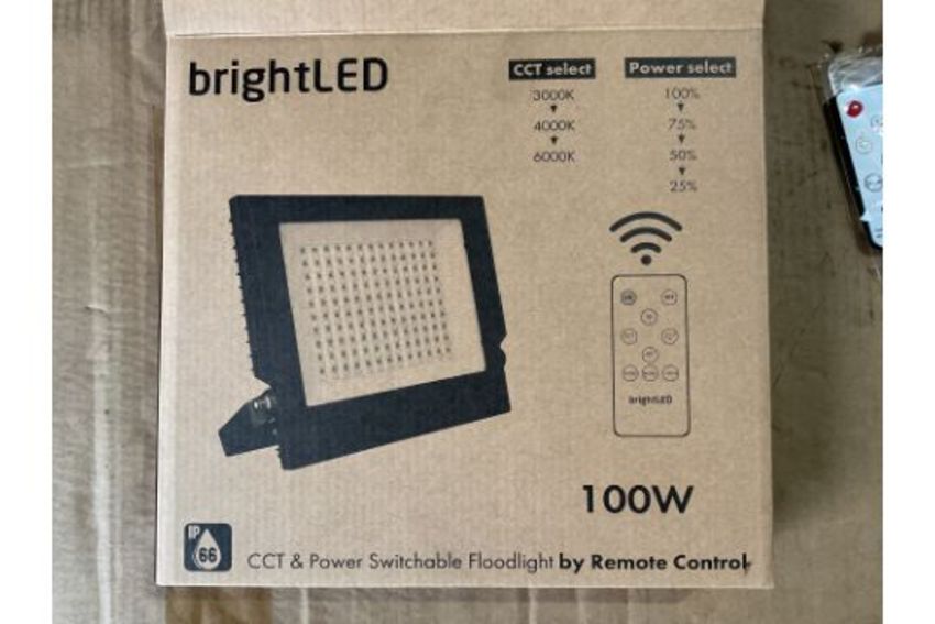 2x New Unissued LED 100W 240V Remote Control Floodlights c/w Fittings