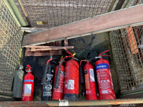 5x Stillages of Vehicle Spares, Tow Ropes, Delivery Pipes, Extinguishers, from MOD