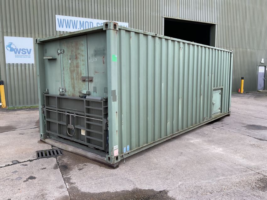 20ft x 8ft Insulated Secure Office Workshop Container with Crane Electrics, Twist Locks and Hydraulic Platform